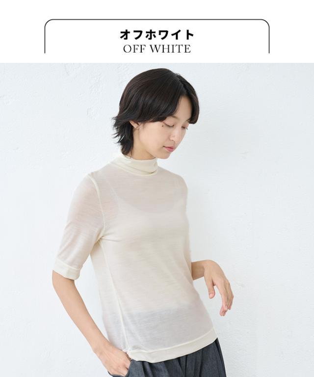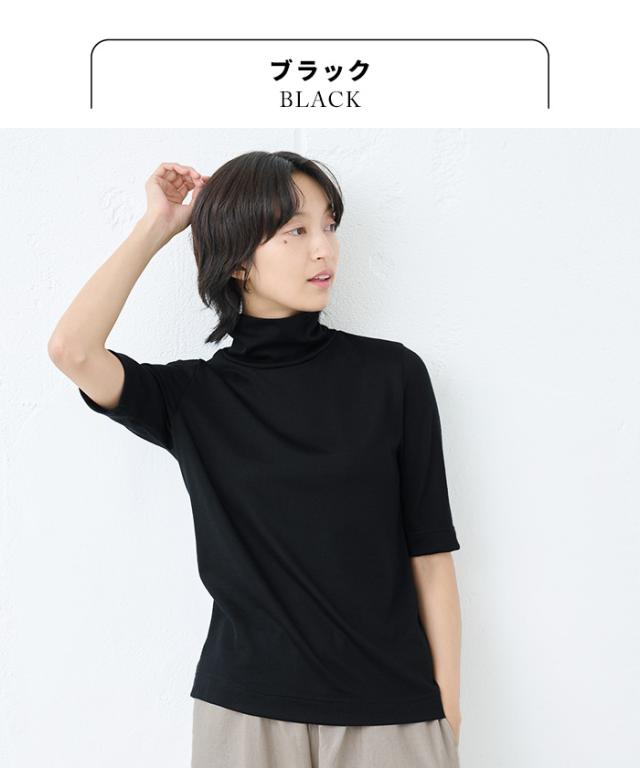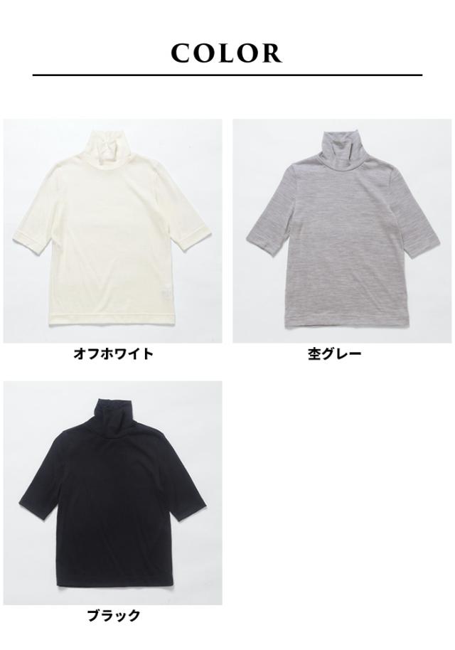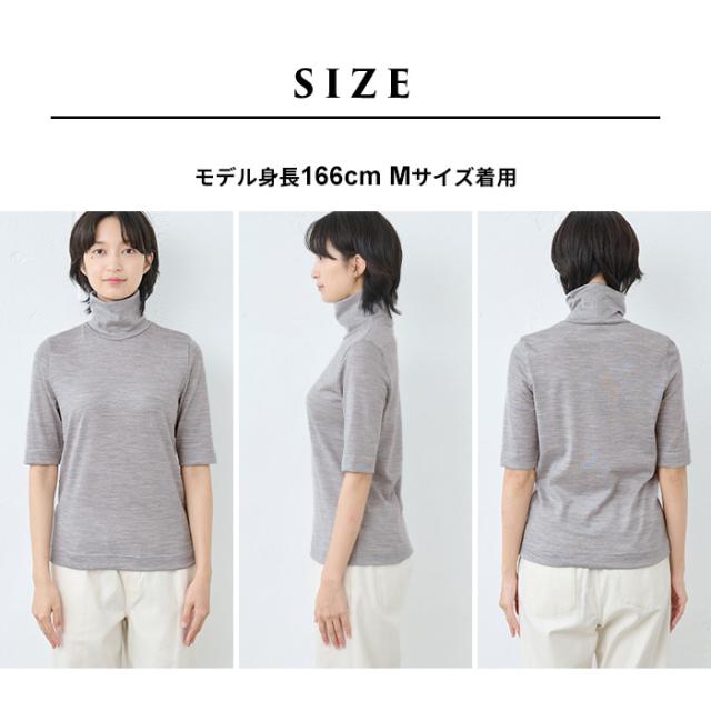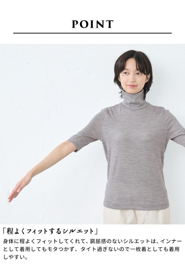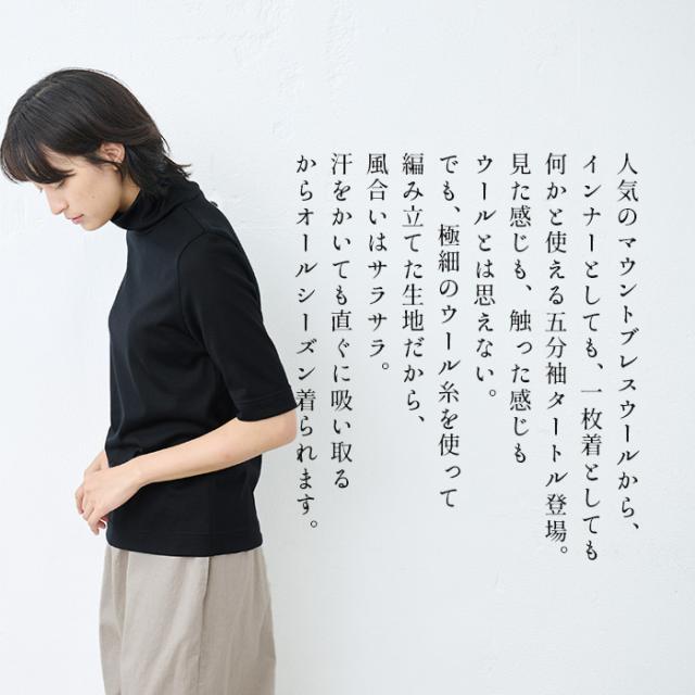 呼吸する ウール100% 五分袖 タートル 日本製 / メリノウール インナー レディース 登山 タートルネック ウォッシャブルウール 毛100 洗えるウール 肌着 下着 薄手 カットソー アンダーウェア マウントブレスウール 防寒 冷え防止 抗菌 防臭 春 秋 冬