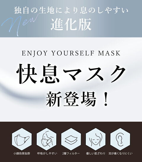 - 快息マスクの1番の特長は型崩れしない所! 顔の上でクシャクシャになってたり、お鼻モッコリになってる方よく見かけますが、みっともないなーと思ってしまいます。 快息マスクは多少パコパコはしますが息を強く吸...