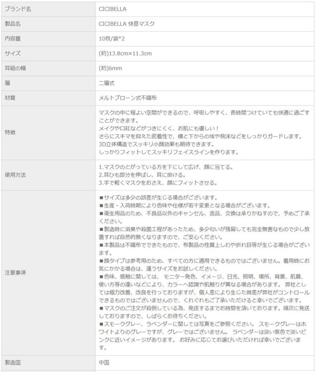 ■商品名:3D CICIBELLA 快息マスク