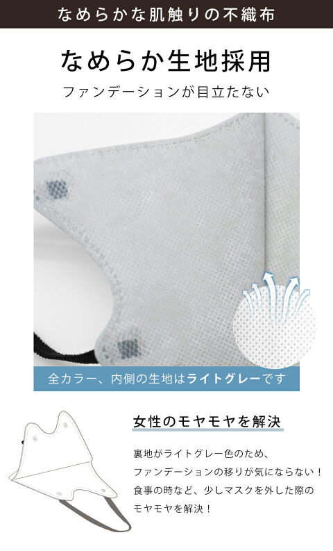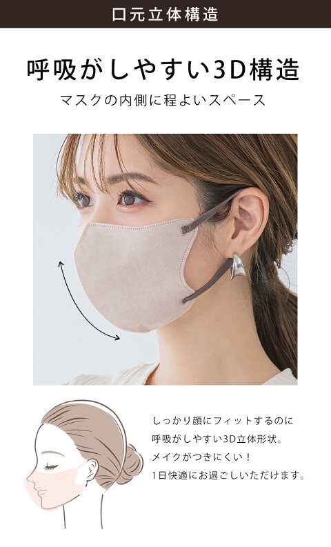 ◎マスクの中に程よい空間ができるので、呼吸しやすく、長時間つけていても快適に過ごすことができます。