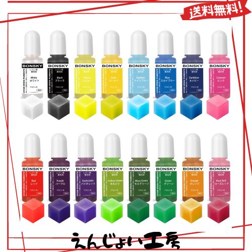 レジン着色剤16色*10mlセット:16色高品質な染料を使用しているため、色あせや退色の心配がありません。UV/LEDレジン、2液性レジン専用着色剤で。Bonskyレジン用染料、無味、無毒、無刺激で、安心してお使いいただけます。Bonskyレジン液と一緒に使うと効果がより良いです。