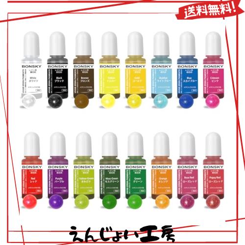 Bonsky レジン 着色剤 レジン液 エポキシ樹脂 着色剤 メタリックカラー-16色*10mlUVレジン用染料 エポキシ樹脂顔料 高濃度 レジン液用 カ