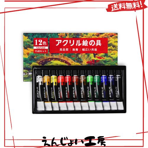 【15点セット】アクリル絵の具セットは、厳選された顔料を使用して生産された12色アクリル絵具セットです。3本のペイントブラシが含まれているため、様々なシーンで対応できます。人気が高い12色を集めて好きな色を作ることができます。絵具が乾くと少し色が変わるので、乾いた色を確かめながら混色します。1本あたり12mlのチューブタイプで、持ち運びもしやすいサイズです。初めてのアクリル絵具として初心者に最適です。