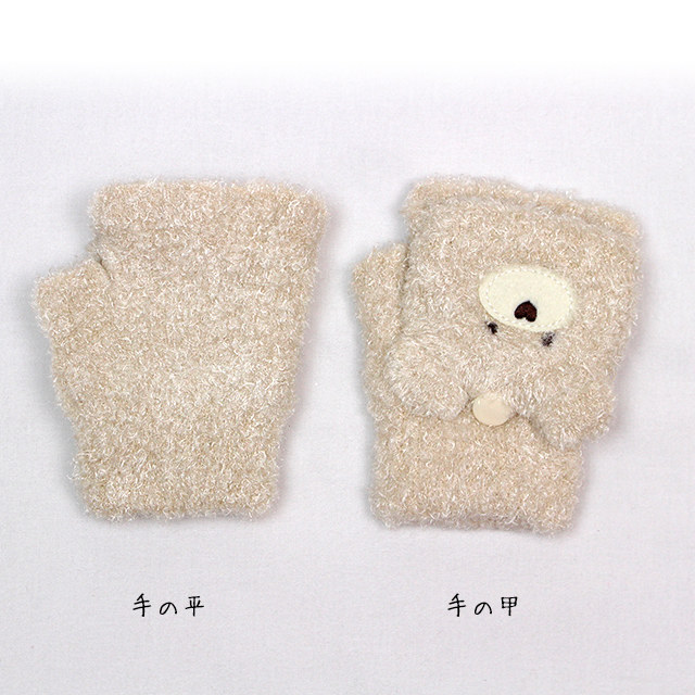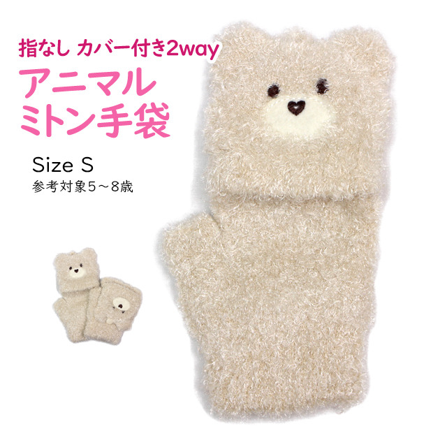 タイプ:子供用 防寒 手袋 アニマル 動物 シャギー 指無し 2way