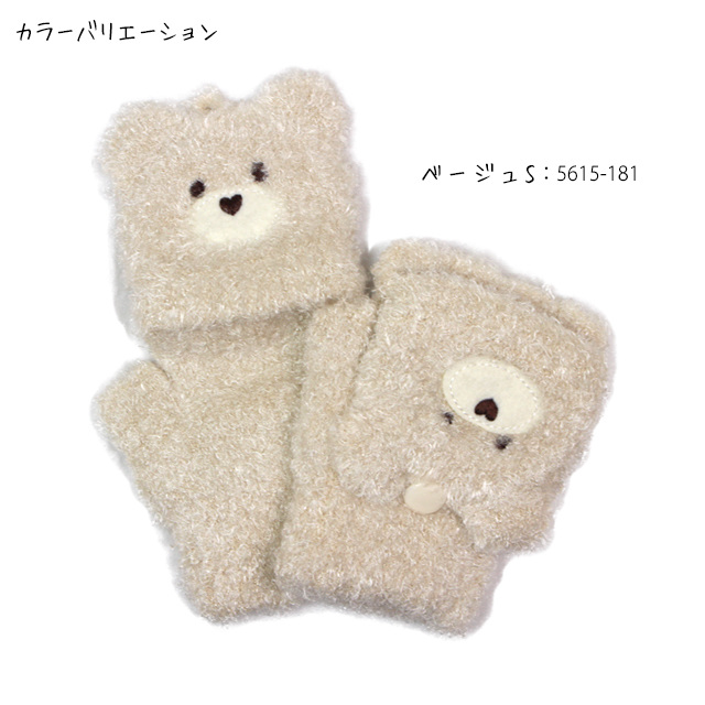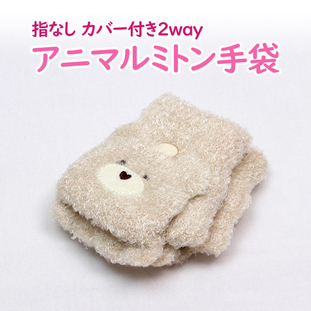| 手袋 ミトン アニマル もこもこ 指なし 2way キッズ 女の子 子供 クマ くまさん かわいい あったか フード付き |