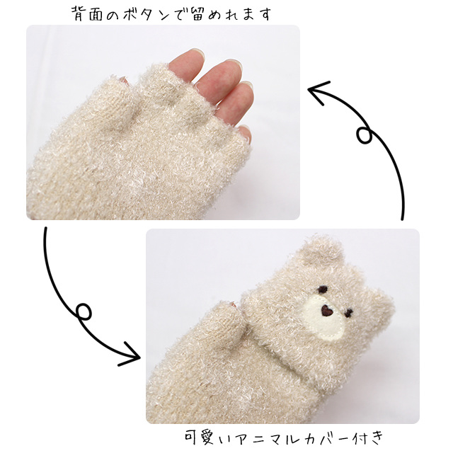 秋冬の必需品!ふわふわで可愛いアニマル柄のカバーを被せばミトンタイプになって指先まで暖か 2wayどうぶつ手袋