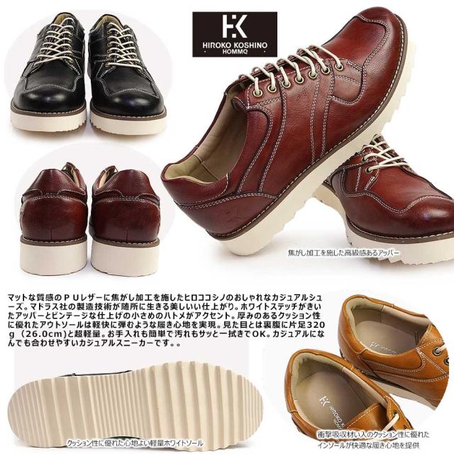 ヒロココシノ オム by マドラス カジュアルシューズ メンズ 紳士靴 HR5903 スニーカー レースアップ 軽量 焦がし加工 HIROKO KOSHINO