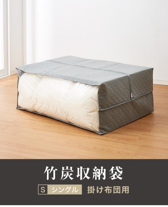 収納ケース シングル掛け布団収納ケース 竹炭収納袋 炭入り 消臭 炭入り消臭 調湿 コンパクト 省スペース 布団収納ケース 布団 ふとん 掛けふとん 袋 隙間収納 収納 クローゼット収納 押入れ収納 ふとん収納袋 布団袋 【送料無料】