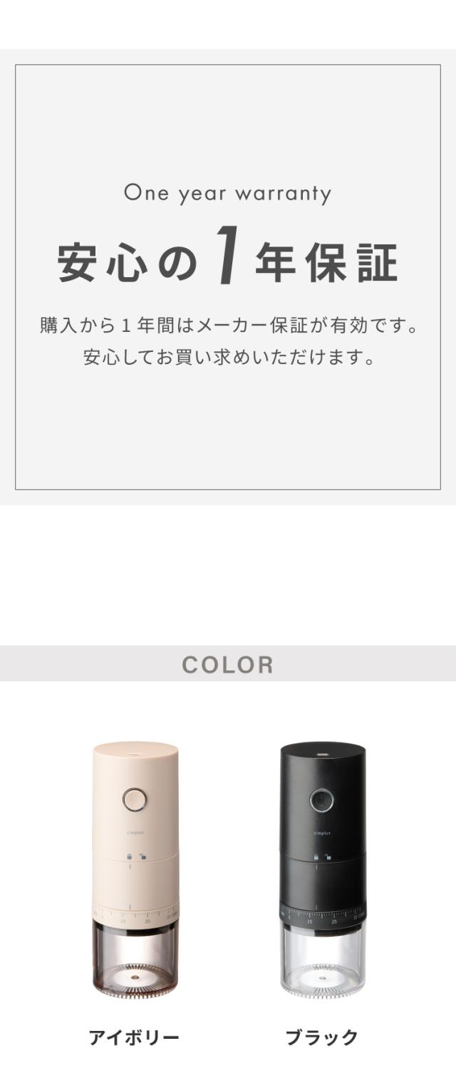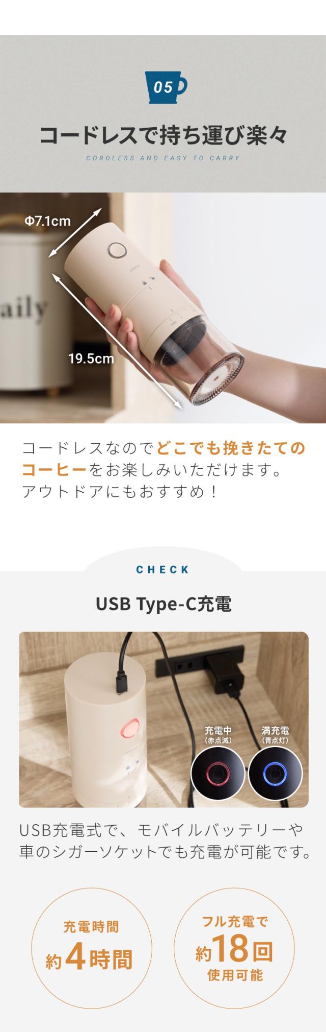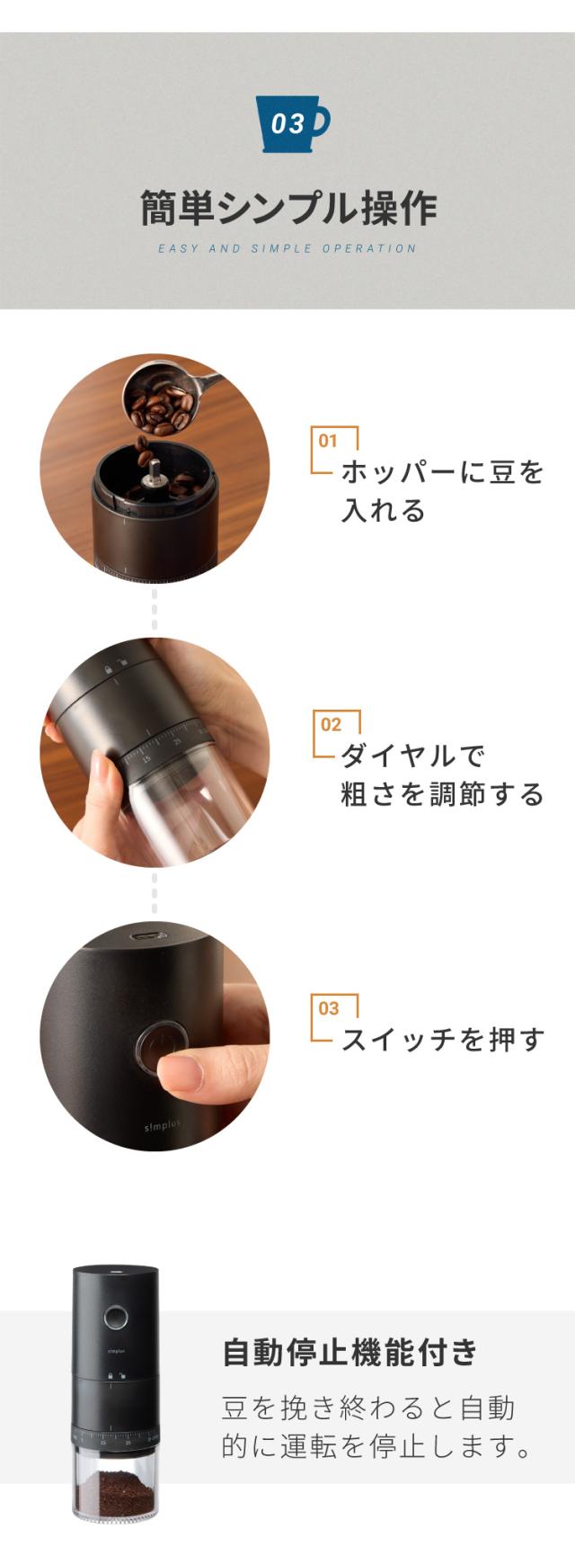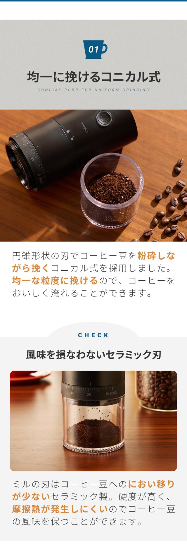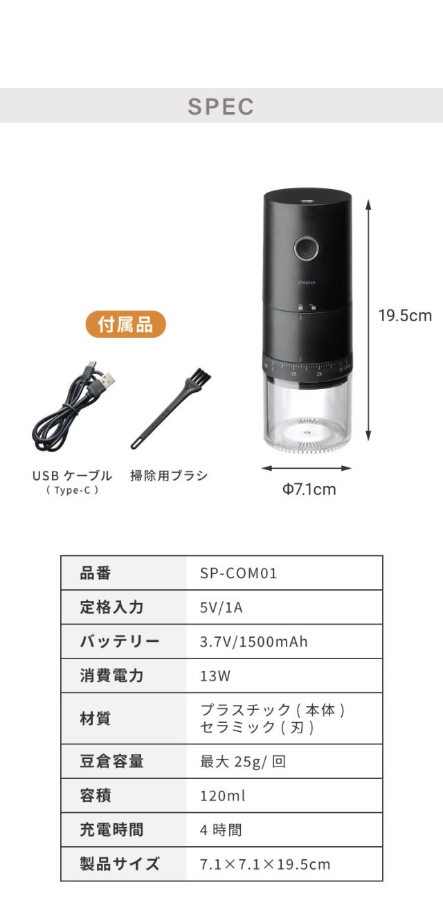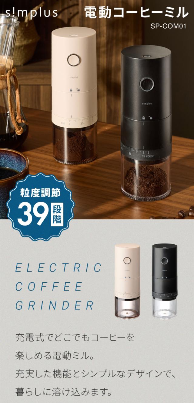 simplus 電動コーヒーミル コニカル式 コードレス セラミック刃 粒度調整 珈琲 持ち運び コーヒーグラインダー プロ仕様 豆挽き SP-COM01 【メーカー保証1年】