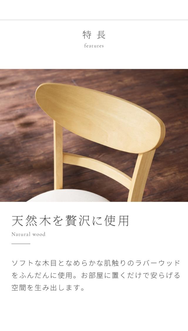 ・天然木を使用した、ナチュラルテイストのダイニングチェアです。