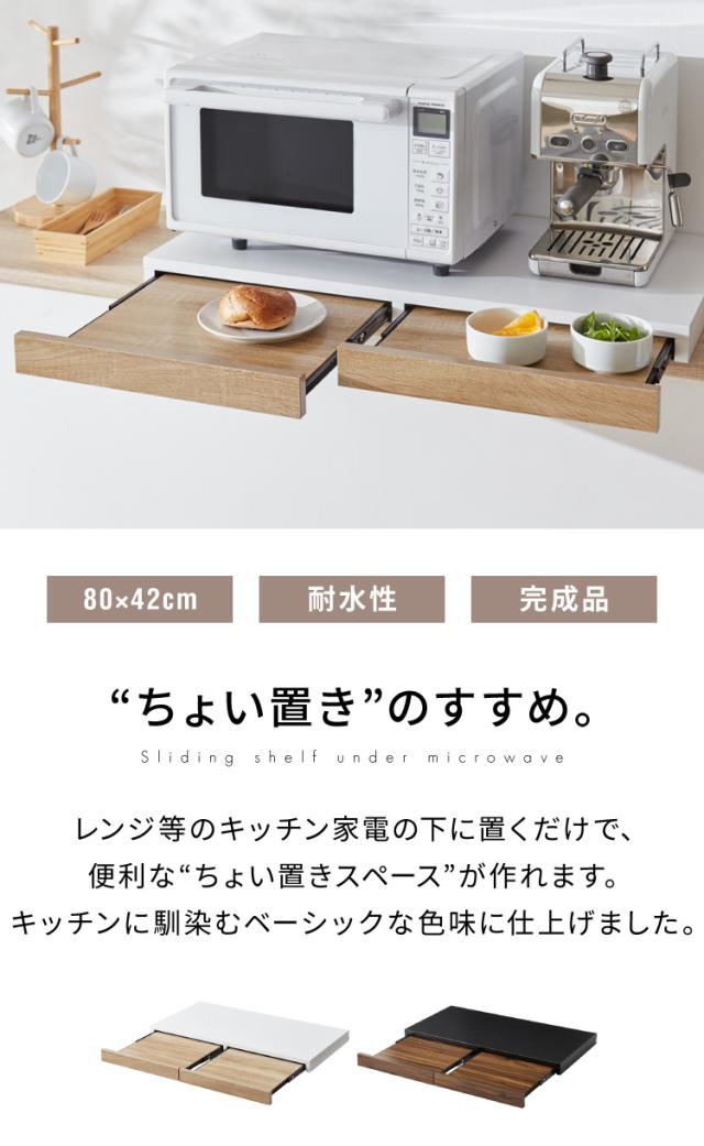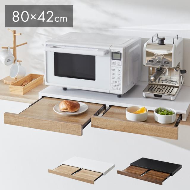 レンジ下トレー ダブル 80×42cm レンジや家電の下に置くだけ レンジトレー スライドトレー レンジ台 置き台 キッチンラック レンジ下 トレー スライド棚【送料無料】