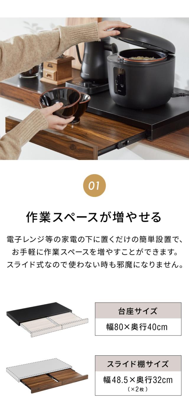 ・レンジや家電の下に置くだけで作業スペースが作れます。
