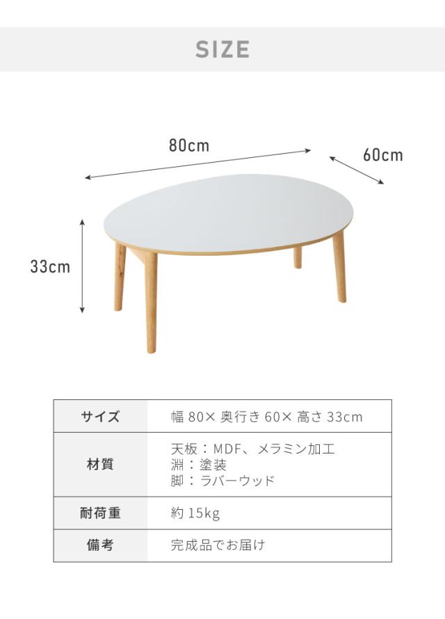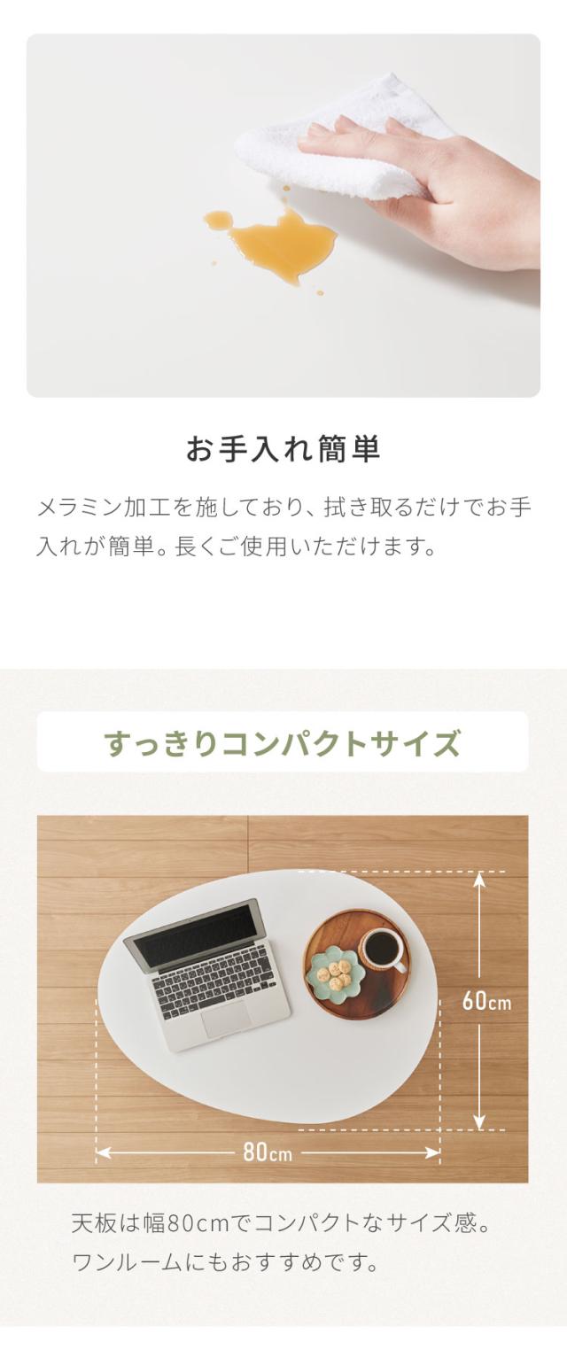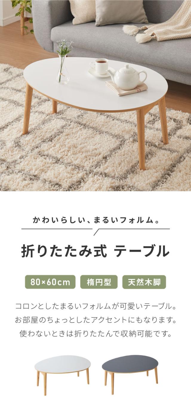 センターテーブル 折りたたみ 楕円型センターテーブル 80×60cm メラミン天板 天然木 幅80 ローテーブル テーブル 机 折り畳み 天然木 一人暮らし 新生活 リビング 食事 作業 おしゃれ 北欧【送料無料】
