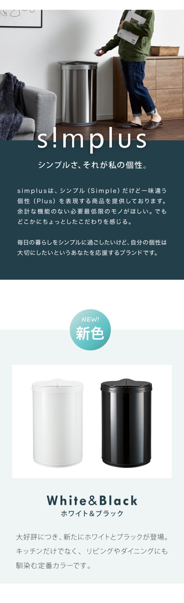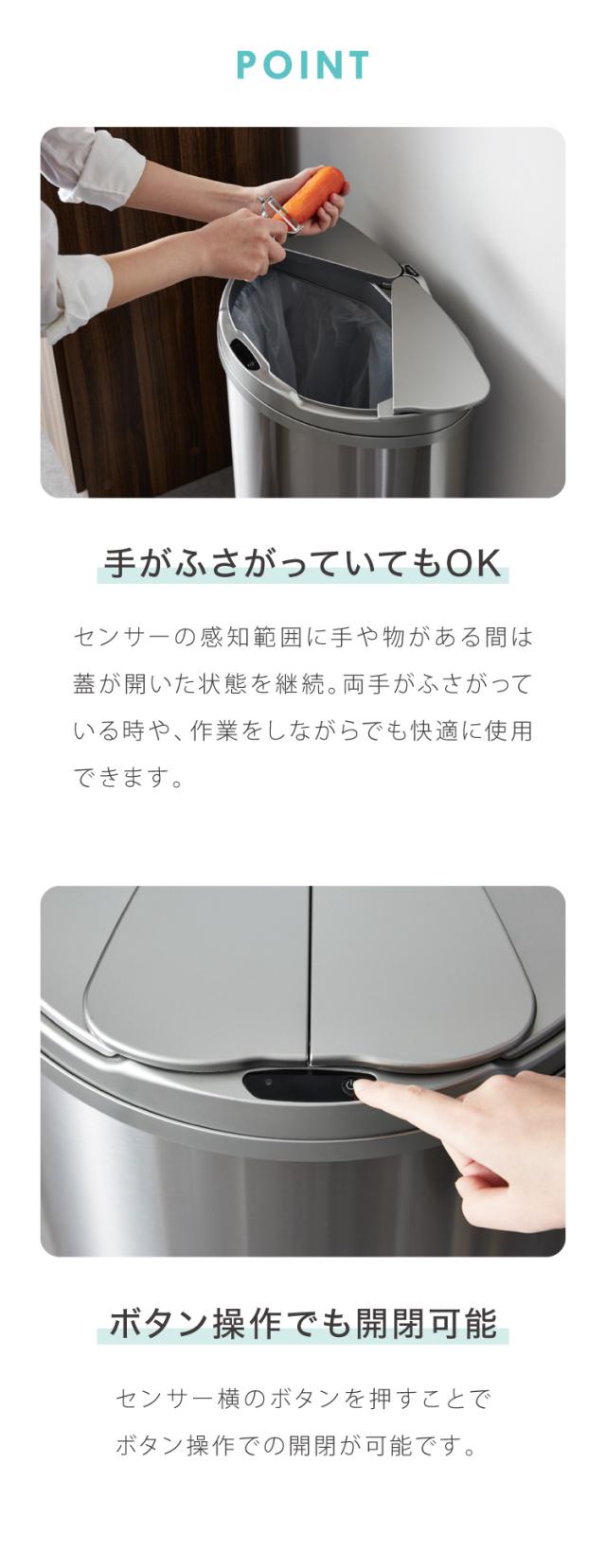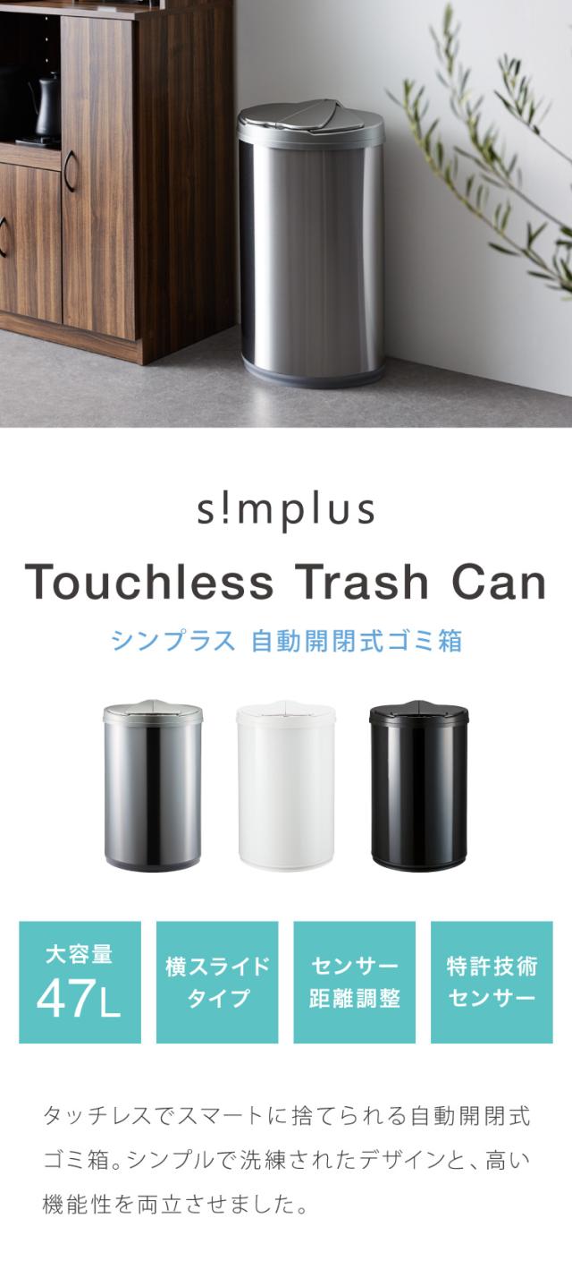 自動開閉ゴミ箱 特許技術 横開き 47L simplus 45L使用可 ふた付き分別 ステンレス 全自動 SP-GBK01 【メーカー保証1年】