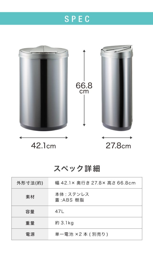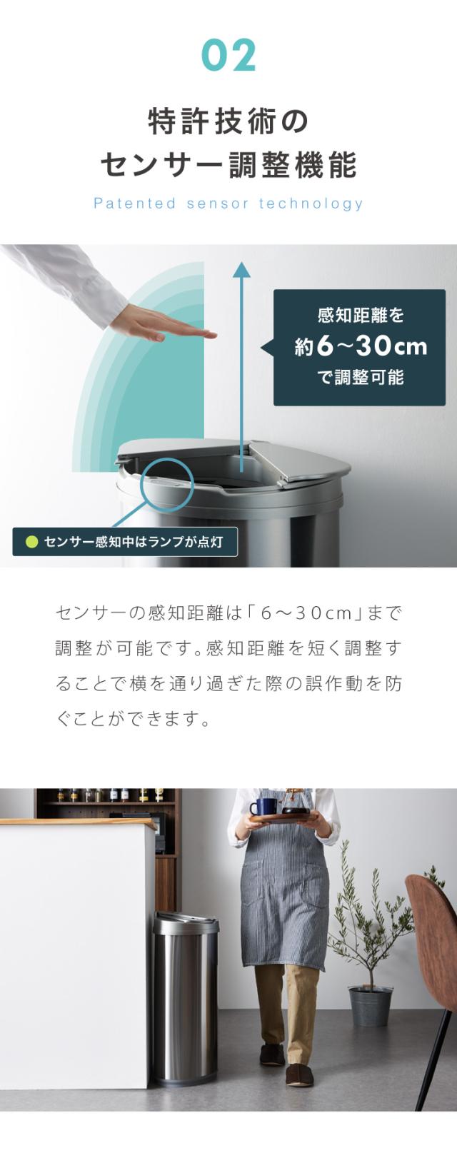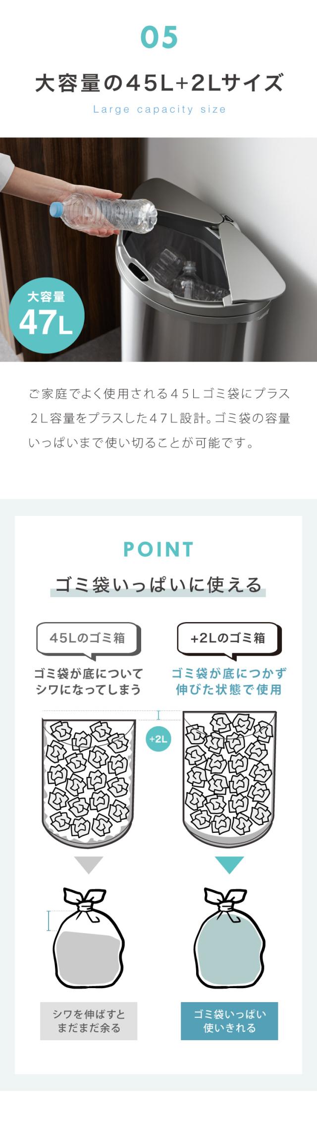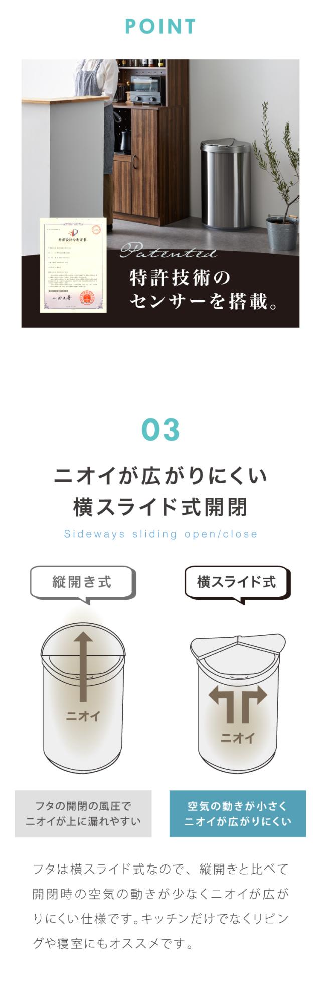 自動開閉ゴミ箱 特許技術 横開き 47L simplus 45L使用可 ふた付き分別 ステンレス 全自動 SP-GBK01 【メーカー保証1年】