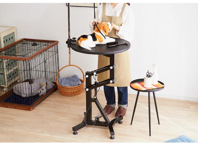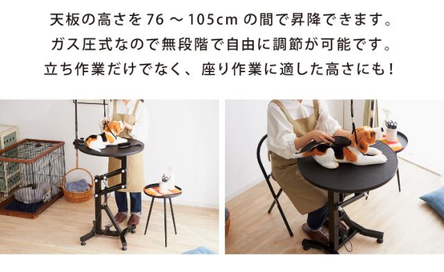 昇降式 小型 トリミングテーブル ガス圧 テーブル 360度 回転 昇降 トリミング台 円形 可動式 トリマー 昇降式テーブル トリミング グルーミング 犬用