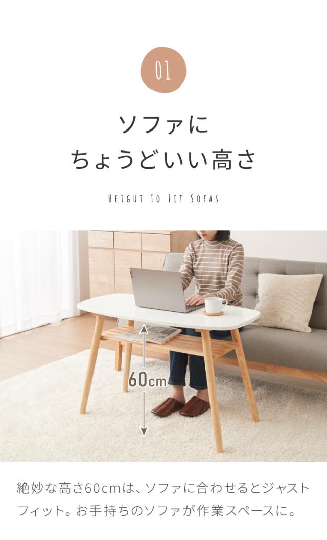 センターテーブル 高さ60cm ハイタイプ 棚付き おしゃれ 北欧 シンプル ナチュラル テーブル ハイテーブル 机 収納付き 天然木 一人暮らし 新生活 リビング ダイニング 食事 作業【送料無料】