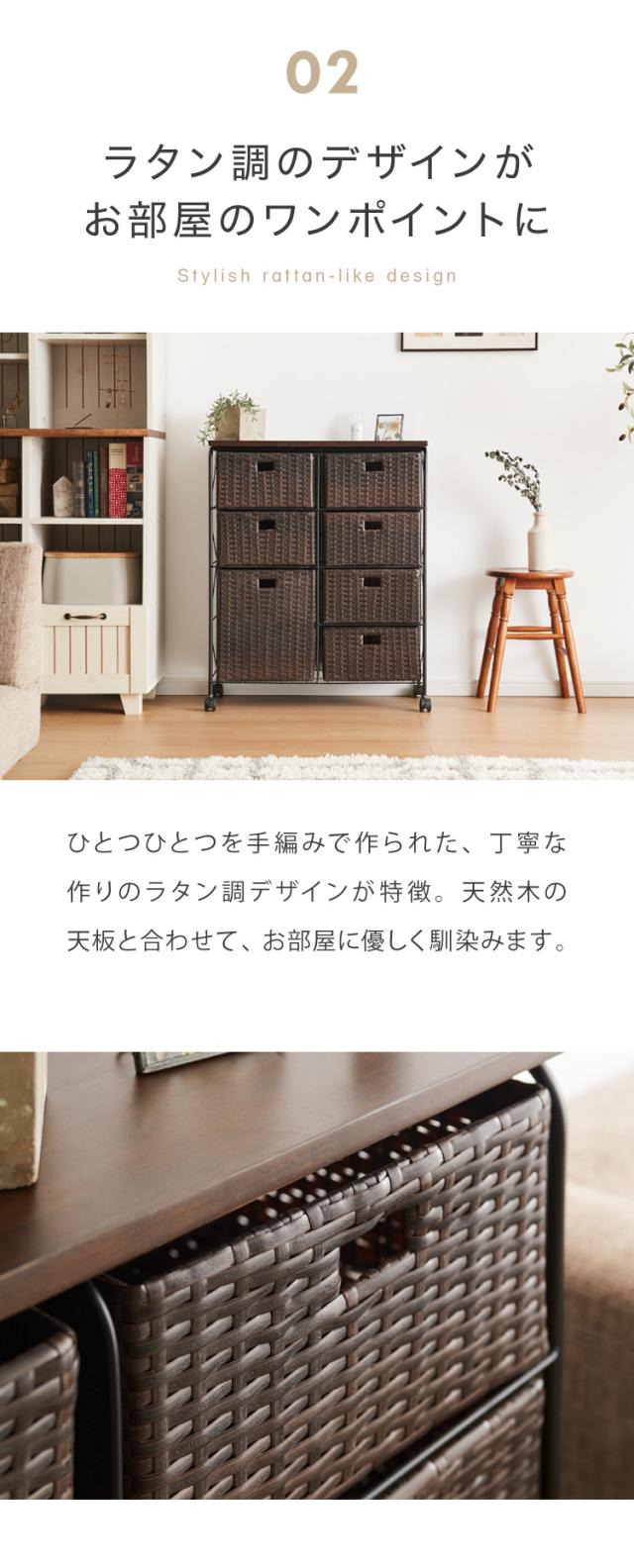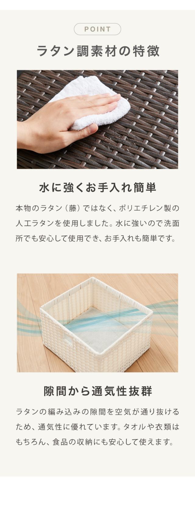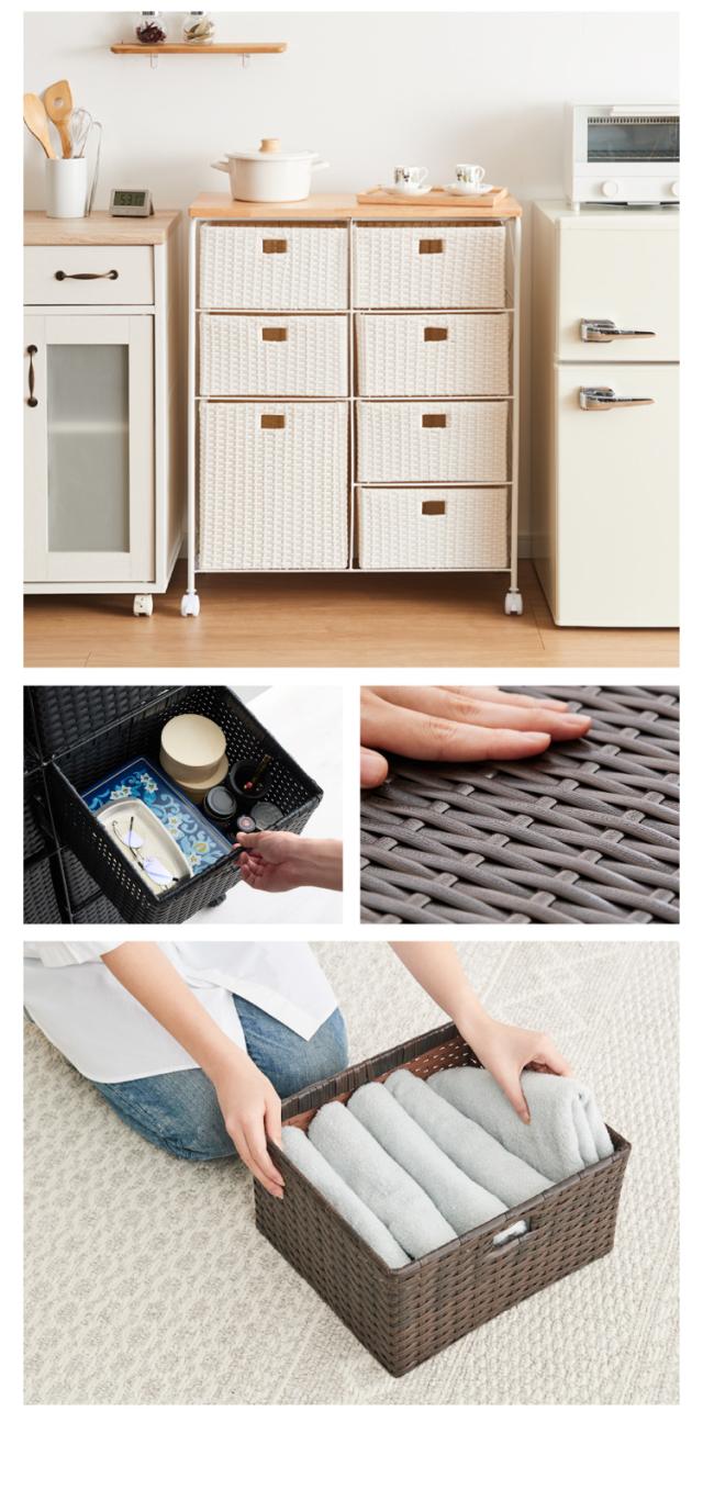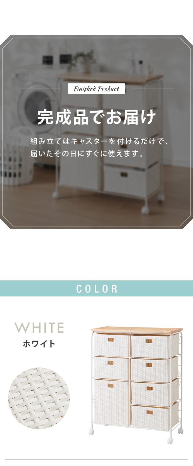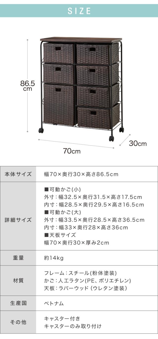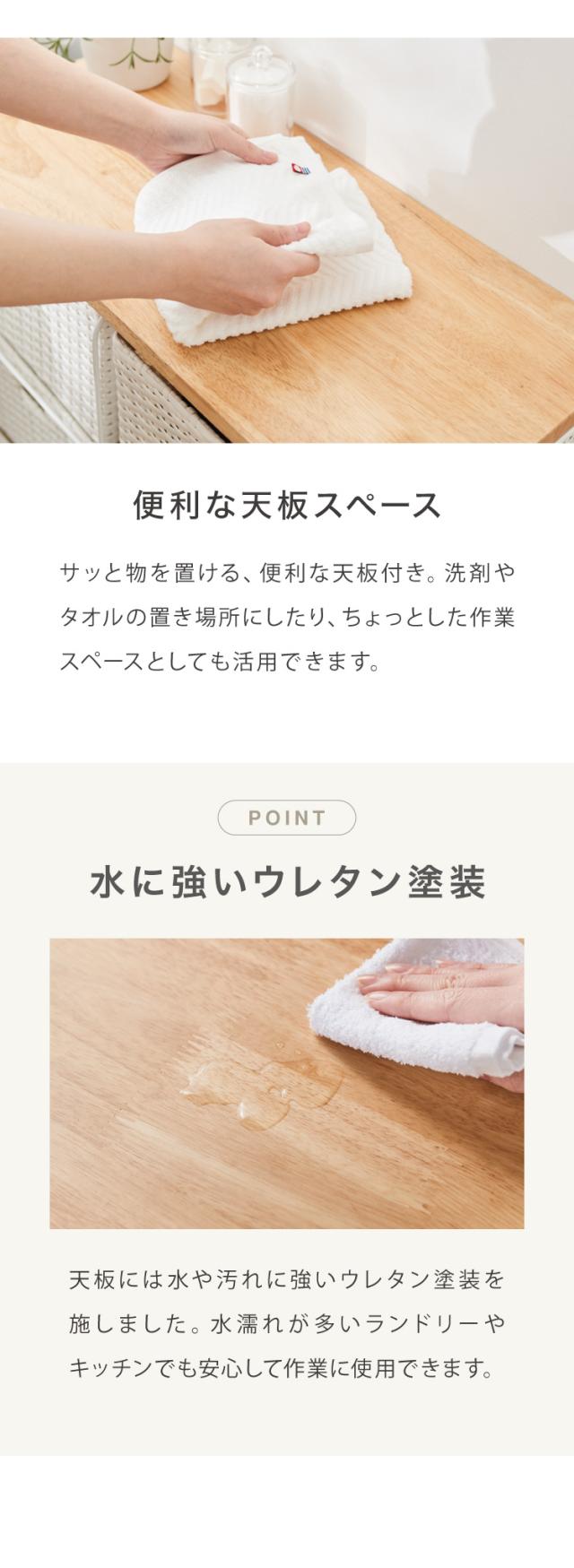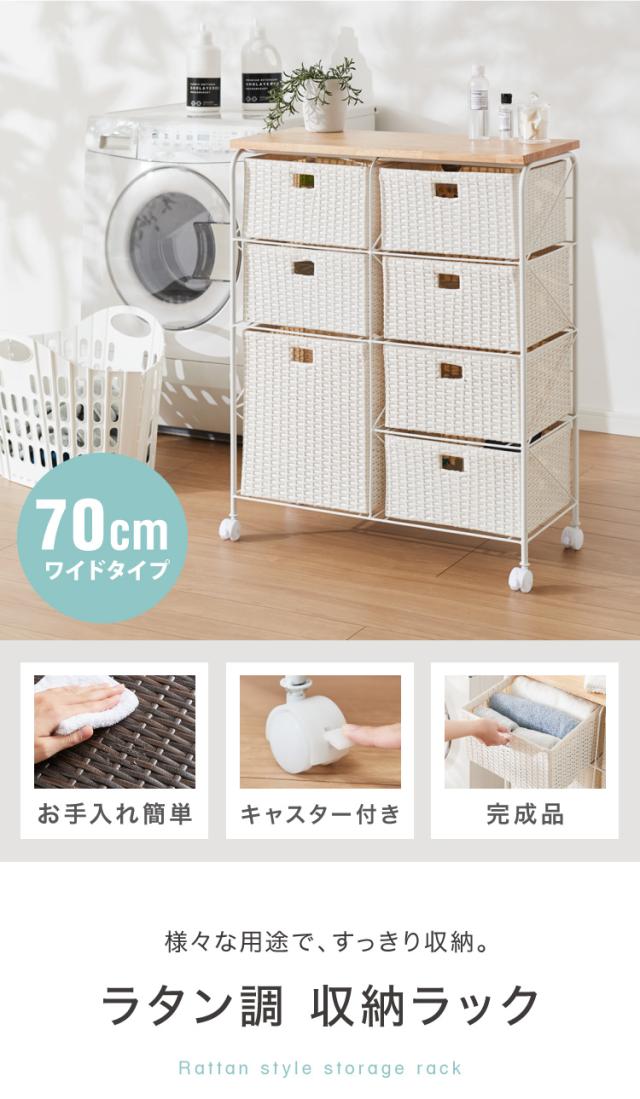 天板付き キャスター付きラタン調サニタリー収納 幅70cm