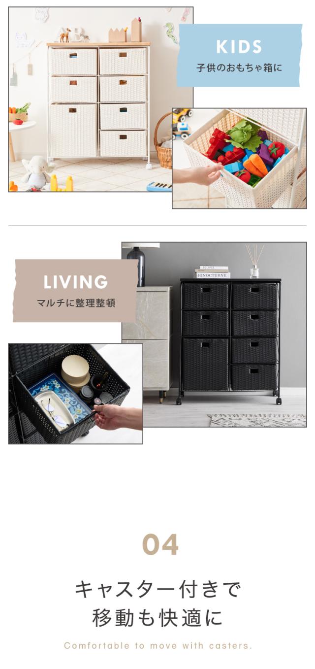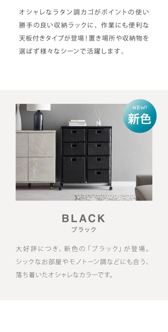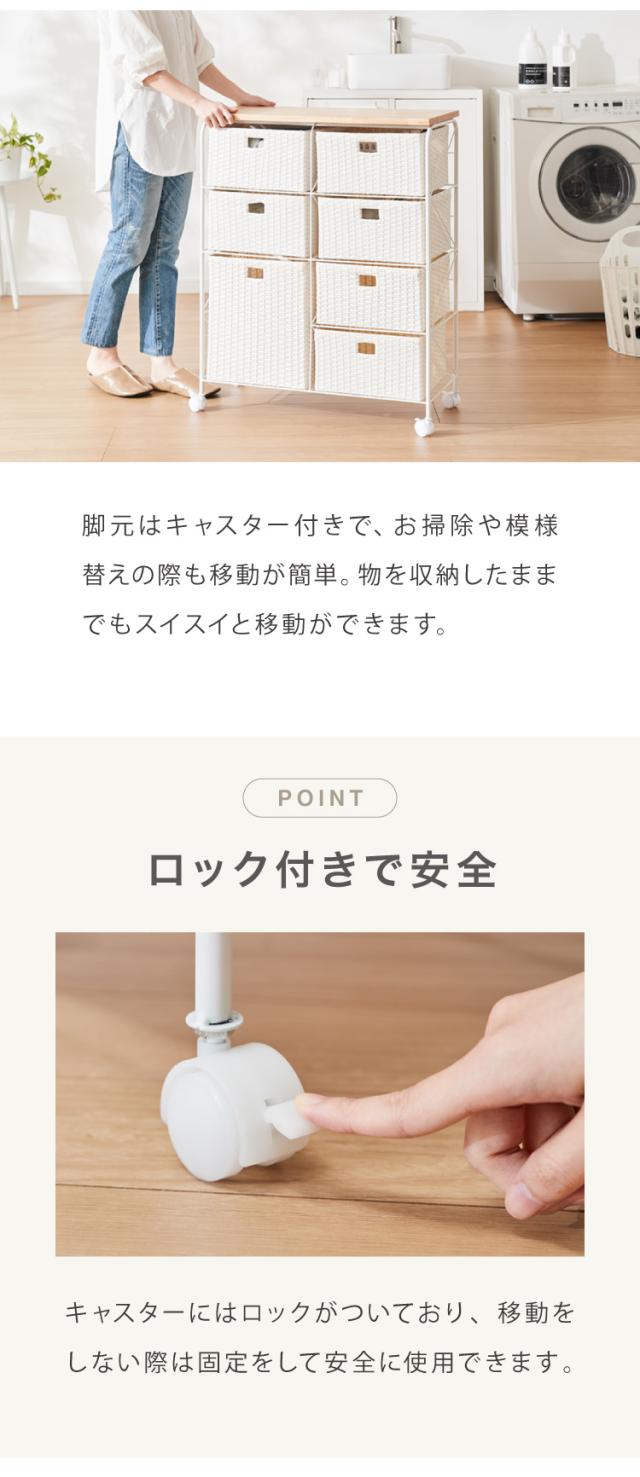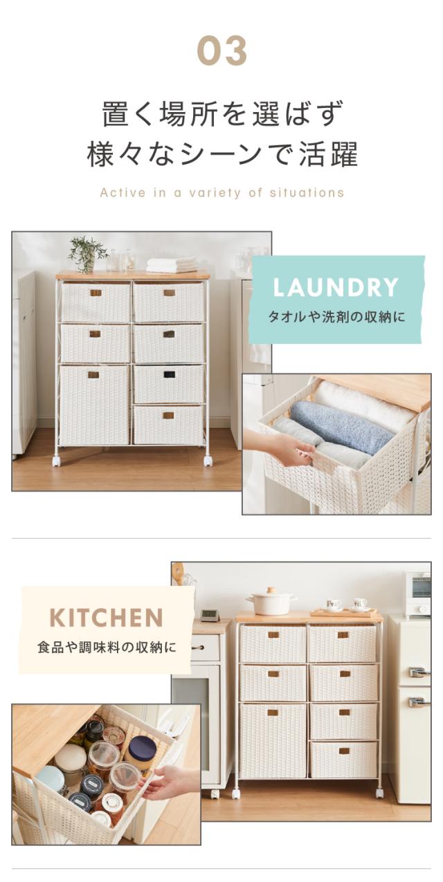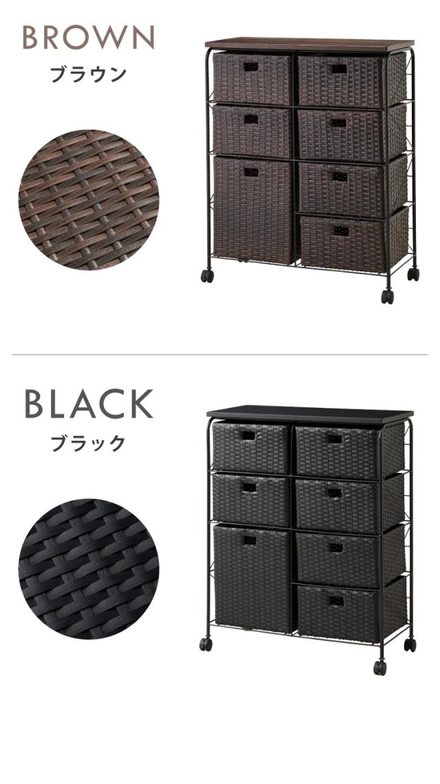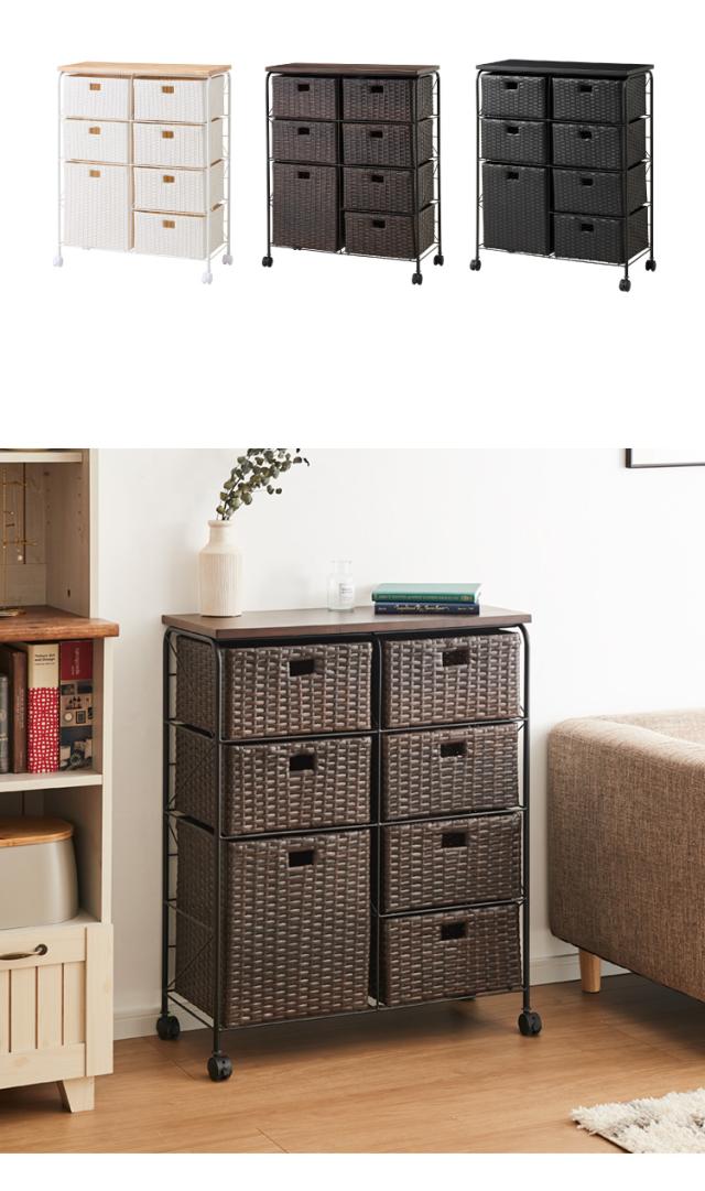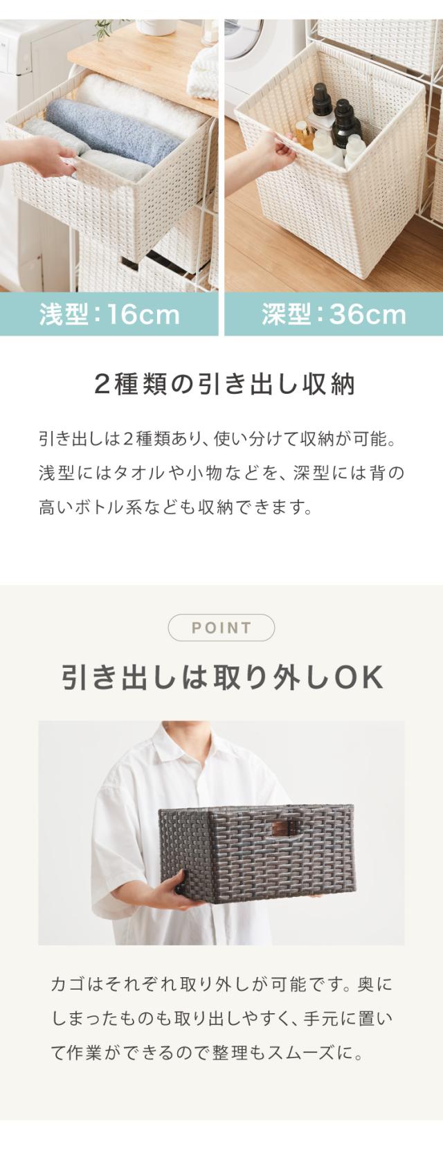 天板付き キャスター付きラタン調サニタリー収納 幅70cm