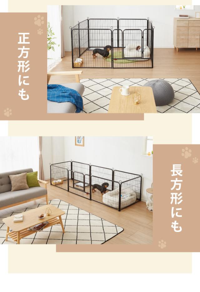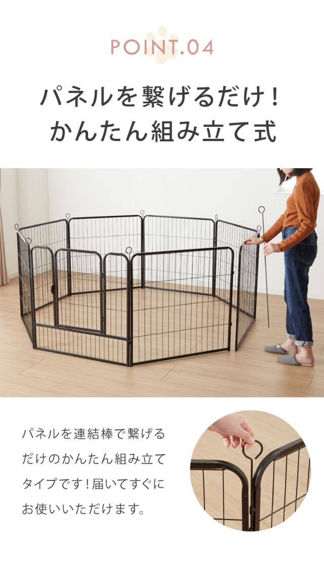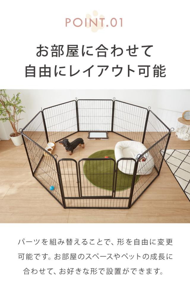 ペットフェンス、ジョイント、ドア付き、組立簡単、置くだけ、ペット、室内、屋内、ペットサークル、柵、ドッグ、ケージ、パーテーション、ペット用品、ペットグッズ、フェンス、犬、猫、工具不要、コンパクト