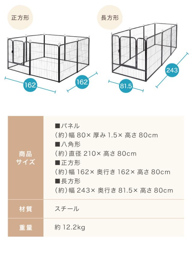 ペットサークル 折りたたみ 高さ80cm ドア付き 組立簡単 八角形 ジョイント式 おしゃれ フェンス ドッグケージ ラージタイプ 室内 屋外 【送料無料】