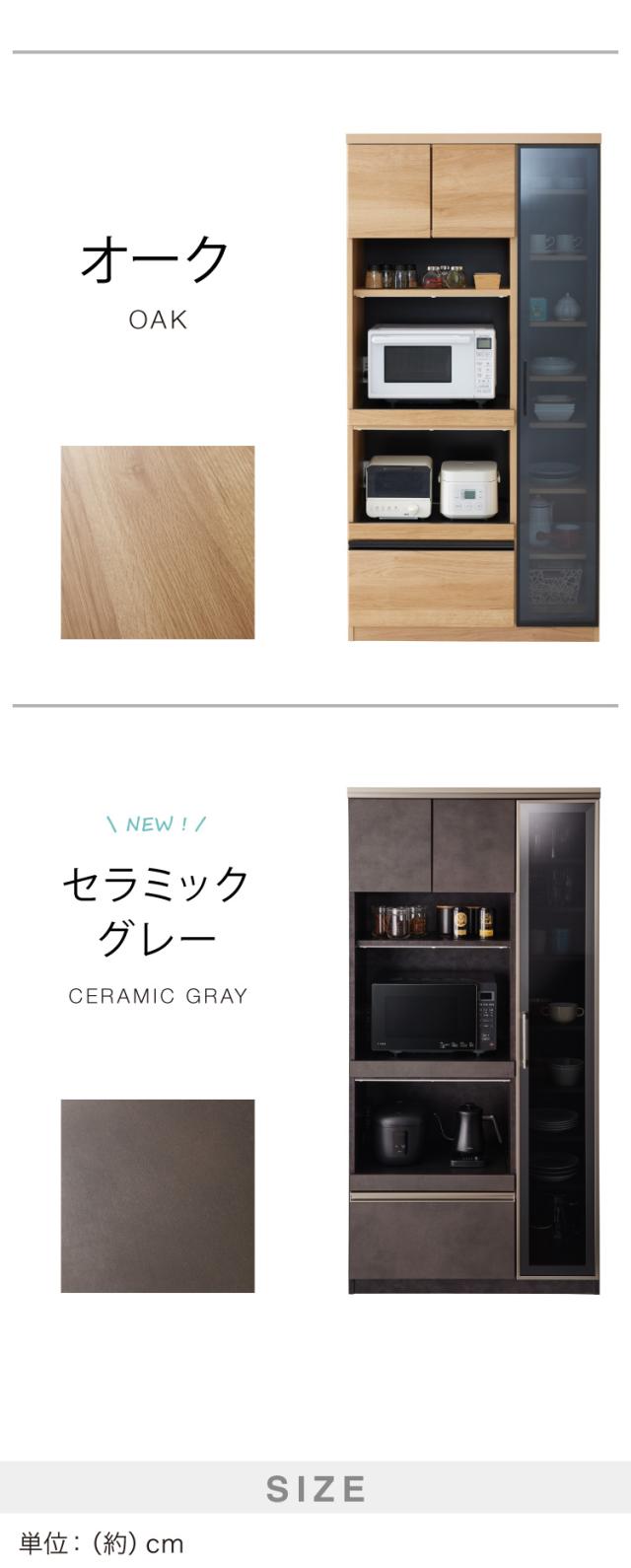 ■素材:[前面]ホワイト柾目:ハイグロスシート/ブラウン木目:オレフィンEBシート/オーク:強化紙/セラミックグレー:オレフィン化粧フィルム