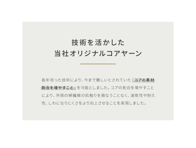 糸の芯(コア)となる部分にポリエステル素材を使用し、その周りに綿繊維を巻きつけたコアヤーン糸を使用しました。