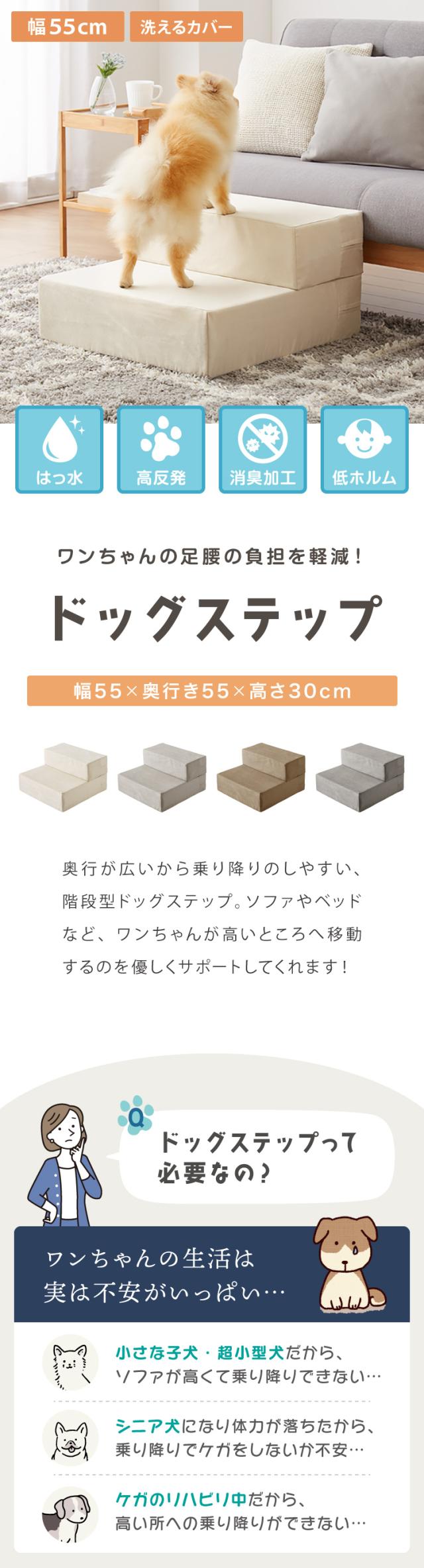 ドッグステップ 2段 階段 滑り止め 幅55cm ペットステップ 踏み台 ステップ 室内犬 ペット用品 ペットスロープ 小型犬 高齢犬 介護用品 ソファ シニア犬 補助 犬用品 ウレタン シンプル トイプードル【送料無料】