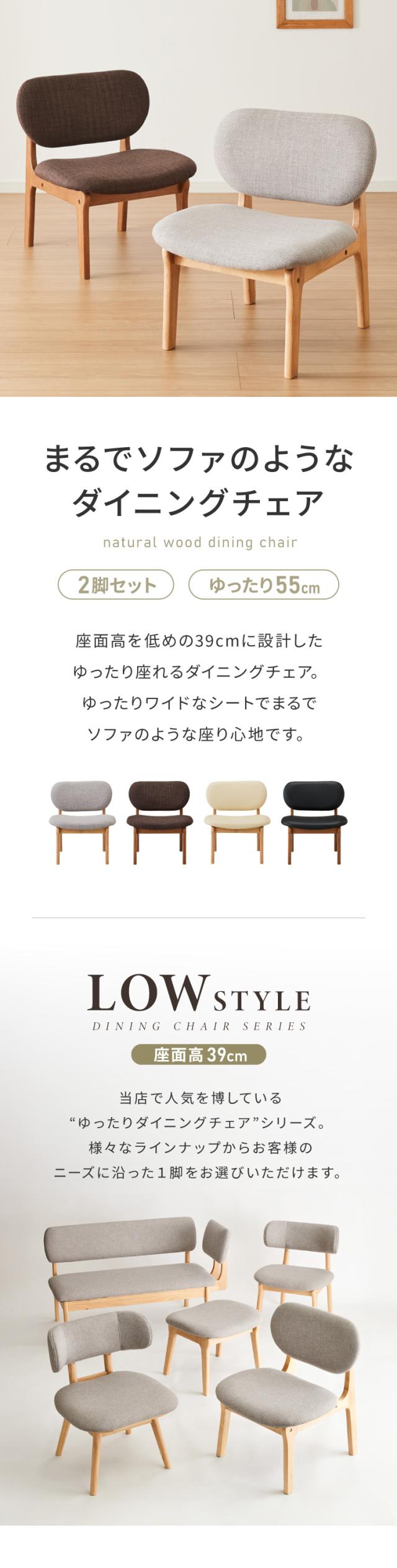 座面高39cm ゆったりダイニングチェア 2脚セット 幅55cm ダイニングチェア ロータイプ 天然木 ファブリック ダイニング チェア パーソナルチェア 1人掛けソファ 椅子 いす イス おしゃれ 二脚セット【送料無料】