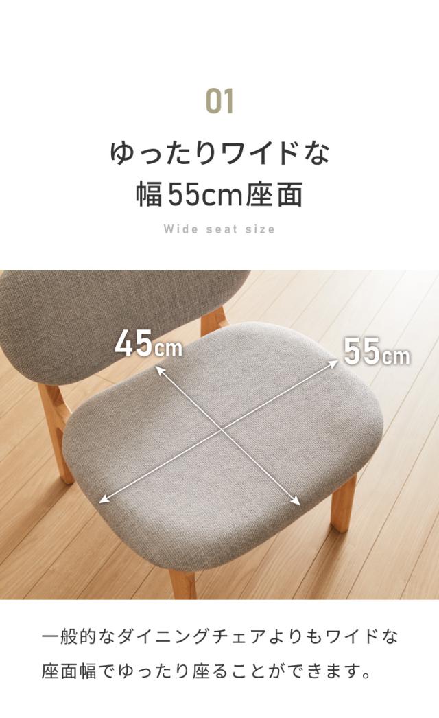 ・座面幅も55cmと、通常のダイニングチェアよりも大きめ