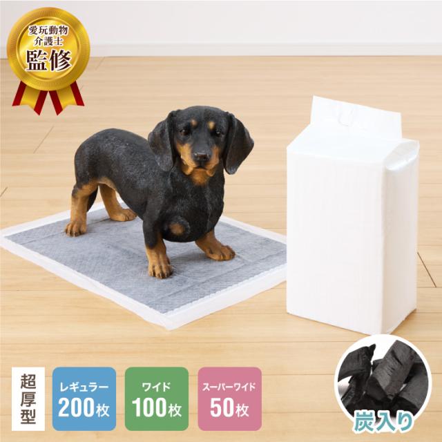 ペットシーツ レギュラー 200枚 ワイド 100枚 スーパーワイド 50枚 超厚型 炭入り 大容量 超吸収 消臭 脱臭 抗菌
