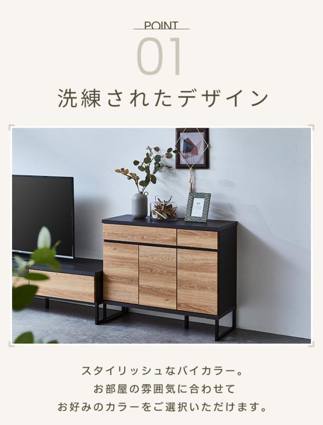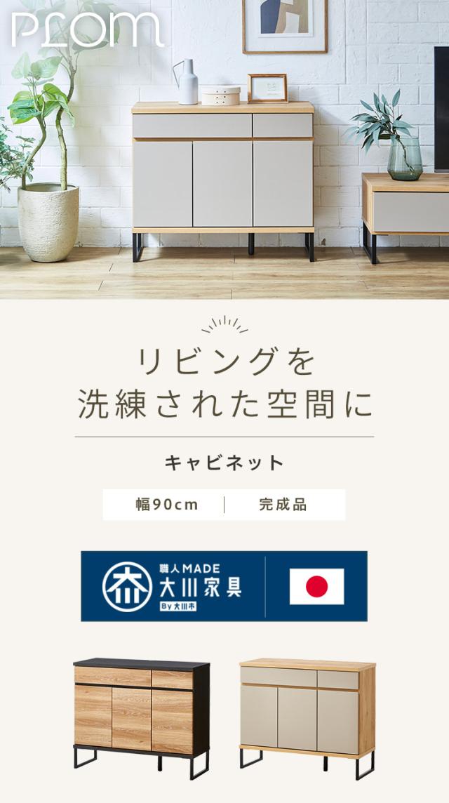 キャビネット 幅90 完成品 オーク グレー 脚付き サイドボード リビング 収納 ルーターラック モデム収納 ダイニング 大容量 おしゃれ 韓国インテリア ブラック 北欧 ナチュラル PLOM プロム(代引不可)【送料無料】