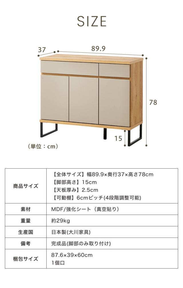 [全体サイズ]幅89.9×奥行37×高さ78cm