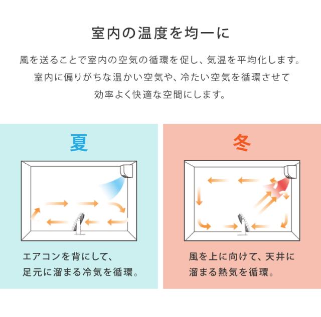 風を送ることで、室内の空気の循環を促し、気温を平均化します。