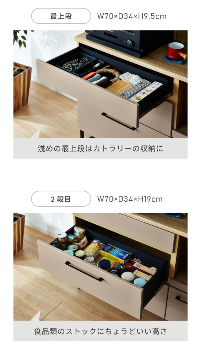 引き出し最上段:幅70×奥行34×高さ9.5cm