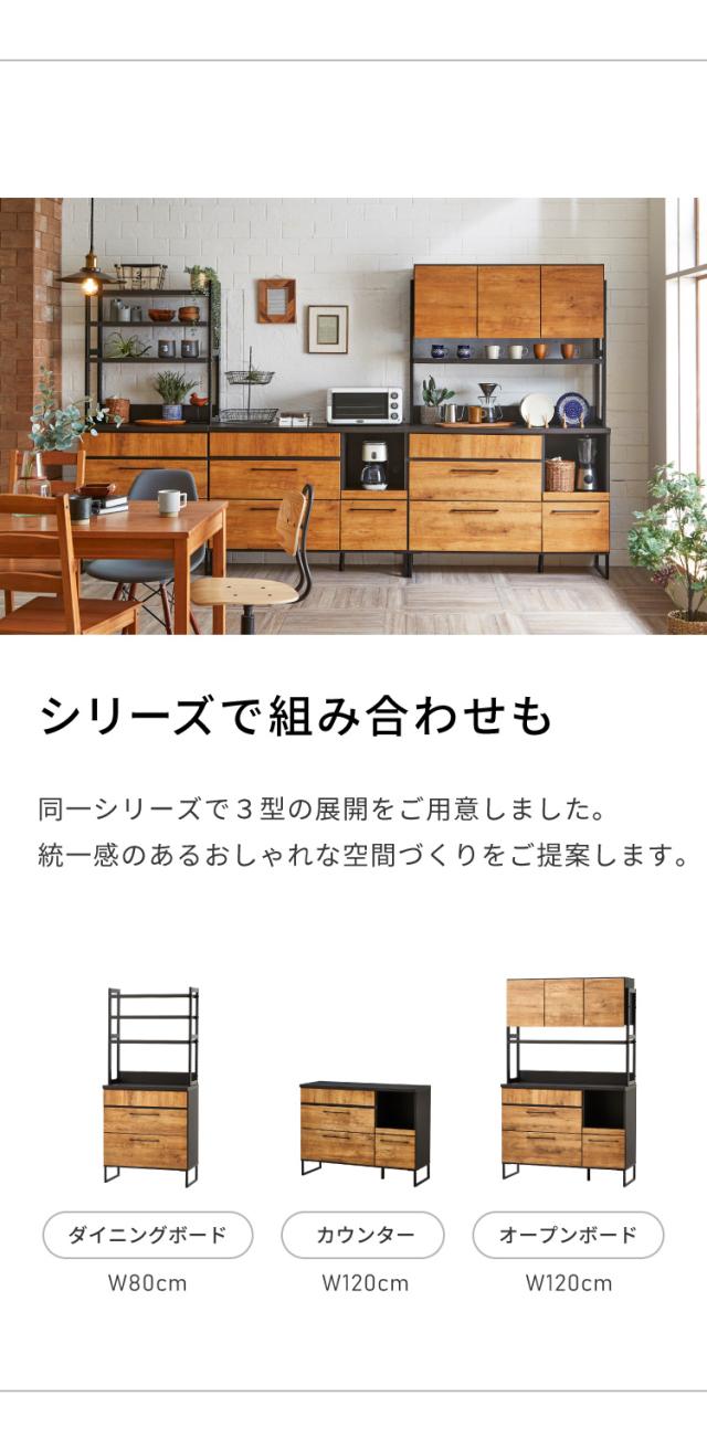 食器棚 幅80cm | 食器棚 幅120cm | キッチンカウンター 幅120cm |