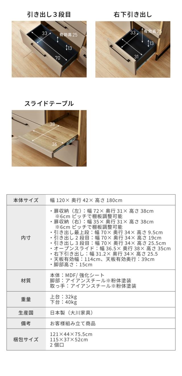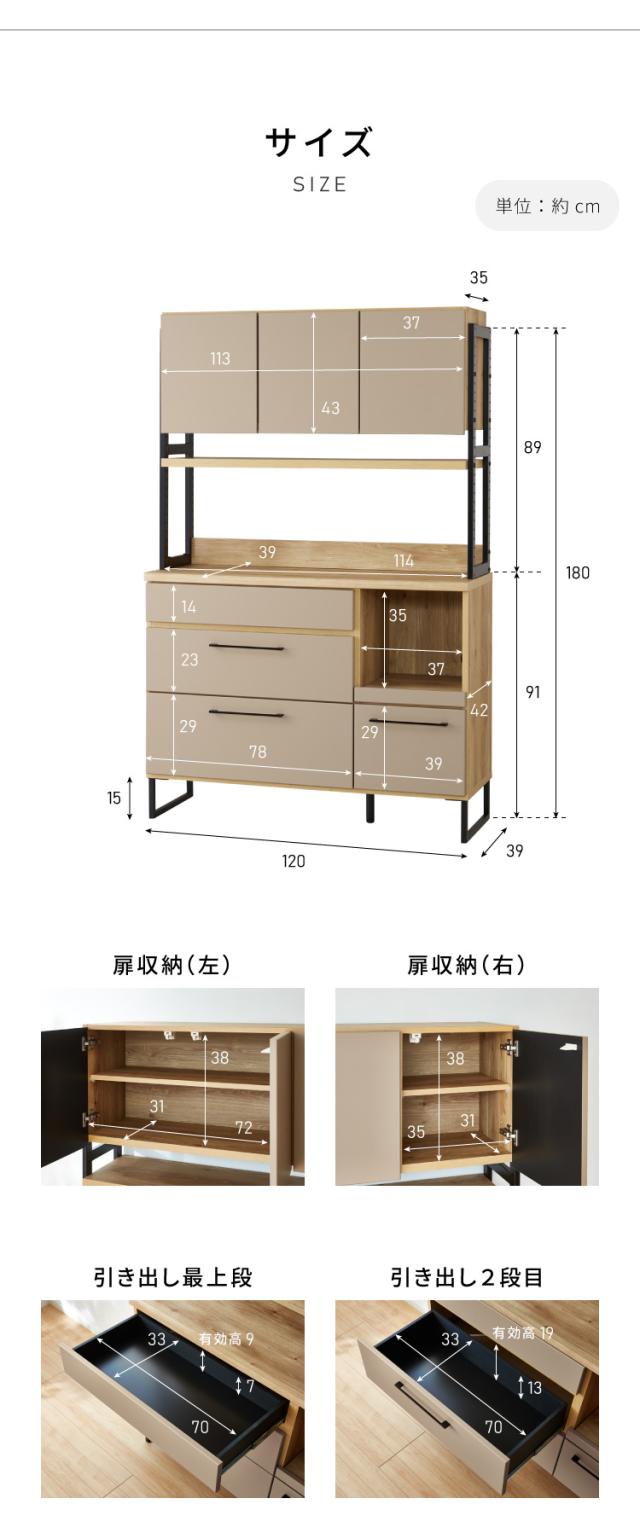 食器棚 幅120 キッチンボード ダイニングボード 日本製 カップボード キッチンキャビネット 大型レンジ対応 お掃除ロボット対応 キッチンラック 木製 おしゃれ 北欧(代引不可)【送料無料】