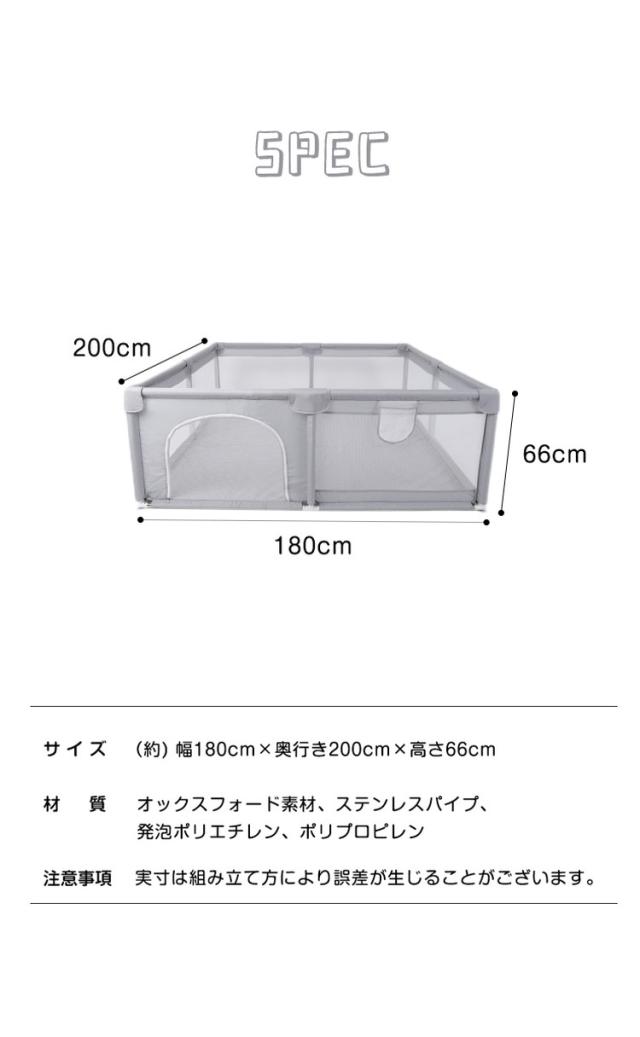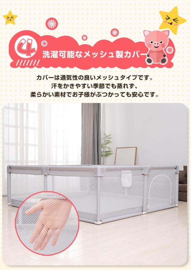 ベビーサークル メッシュ 180×200cm 大型 ハイタイプ 扉付き プレイヤード 大きい 自立式 ベビーゲート ベビー フェンス サークル 滑り止め 洗濯可能 洗える 赤ちゃん 子供【送料無料】