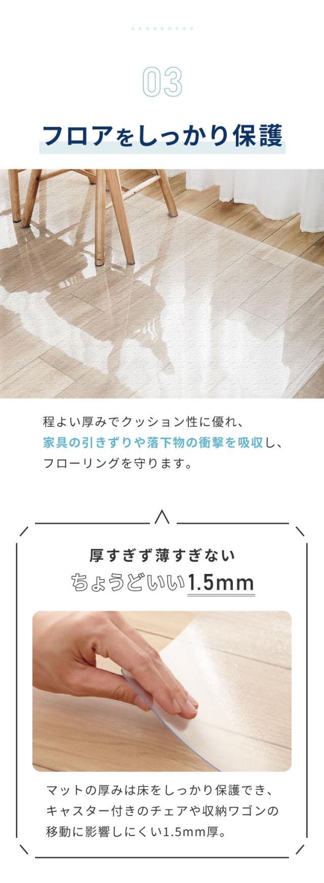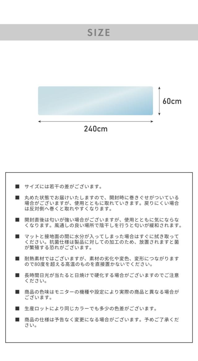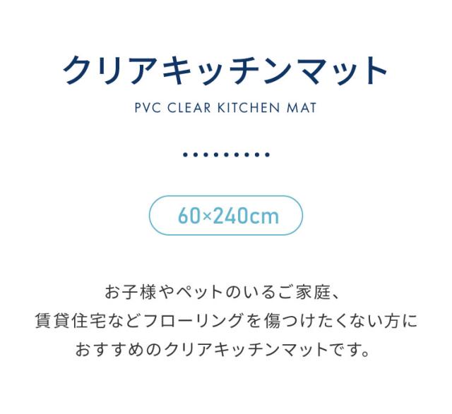 キッチンマット 240cm×60 拭ける クリア 透明 1.5mm厚 大判 PVC 撥水 床暖房対応 収納 シンプル 床保護シート おくだけ【送料無料】