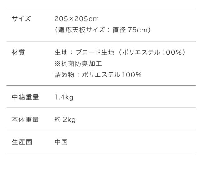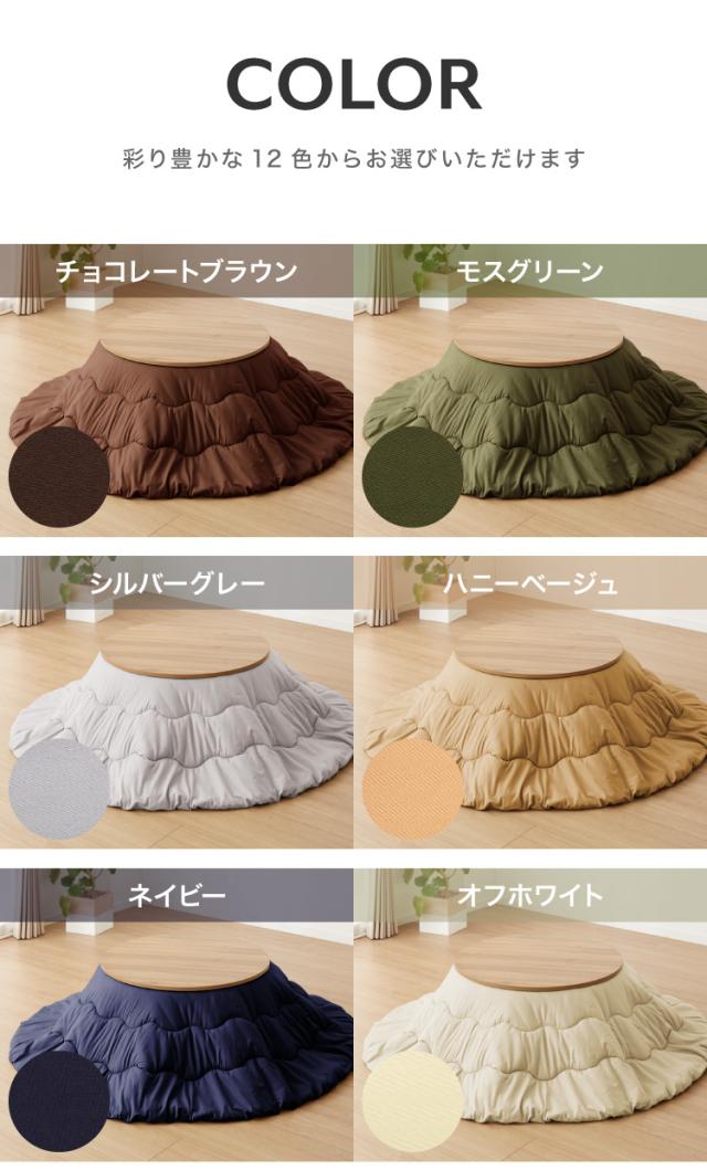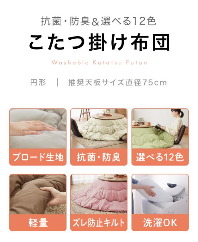 選べる12色 こたつ布団 円形 205×205cm 抗菌防臭加工 抗菌 防臭 厚手 省スペース 無地 シンプル 北欧 おしゃれ あったか 上掛け 円形こたつ布団 こたつ 掛けふとん 掛け布団 こたつ掛布団【送料無料】