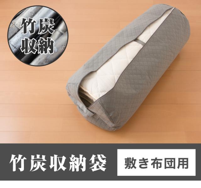 竹炭収納袋 敷き布団収納 クローゼット収納 押入れ収納 ふとん収納袋 円筒形 布団袋 布団収納ケース 炭入り消臭【送料無料】