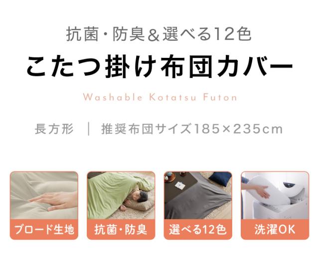 選べる12色 こたつ掛け布団カバー 長方形 195×245cm 抗菌 防臭 洗える ウォッシャブル 省スペース あったか 北欧 おしゃれ 無地 掛け布団カバー こたつ カバー 掛け布団 こたつカバー シンプル【送料無料】