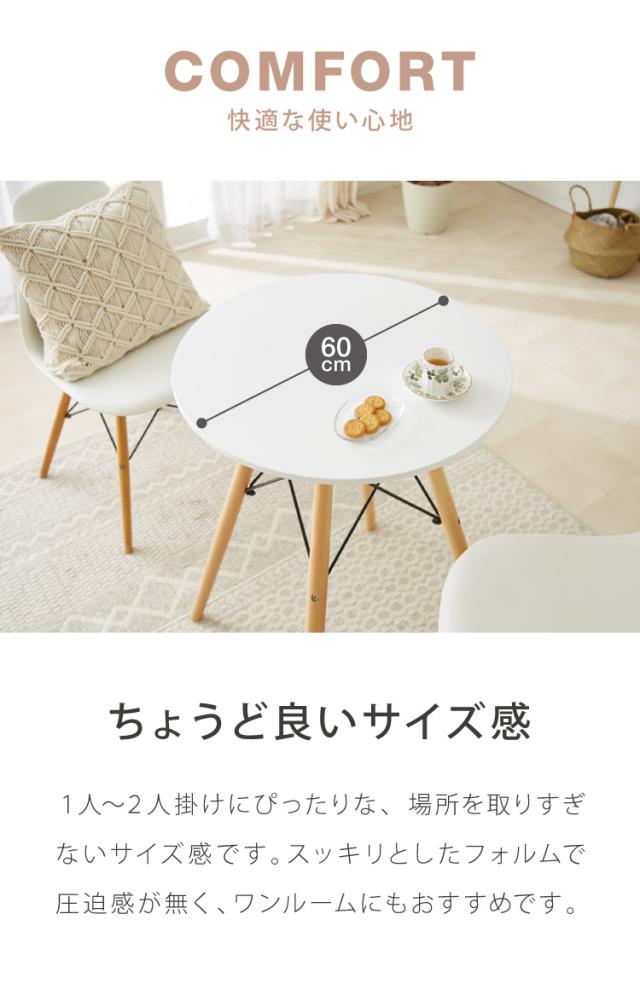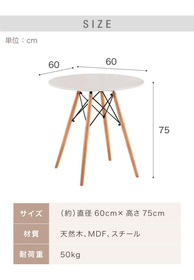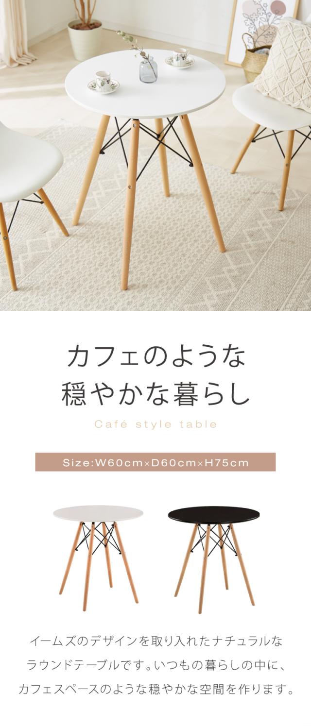 コーヒーテーブル、ダイニングテーブル、送料無料、ミッドセンチュリー、センターテーブル、デザイナーズ、モダン、リビング、イームズカフェテーブル、丸、一人暮らし、幅60cm、高さ75cm、円形、白、ホワイト、黒、ブラック、天然木使用、コンパクト、軽量、おしゃれ、シンプル、北欧、木脚、イームズテーブル、カフェテーブル、eams