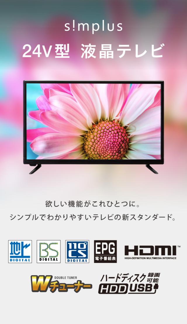 液晶テレビ 24インチ ダブルチューナー simplus 裏番組 24型 地上・BS・110度CSデジタル ハイビジョン 外付けHDD録画機能 壁掛け VAパネル 【メーカー保証1年】