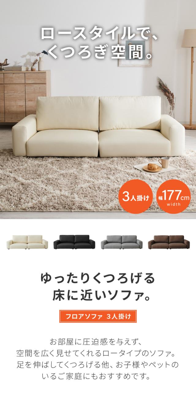 ローソファ 3人掛け ファブリック フロアタイプ アイボリー ブラック グレー 北欧 おしゃれ 1人暮らし フロアソファ フロアソファー ローソファー ロータイプ ソファ ソファー ヘイリー 単品 こたつ【送料無料】