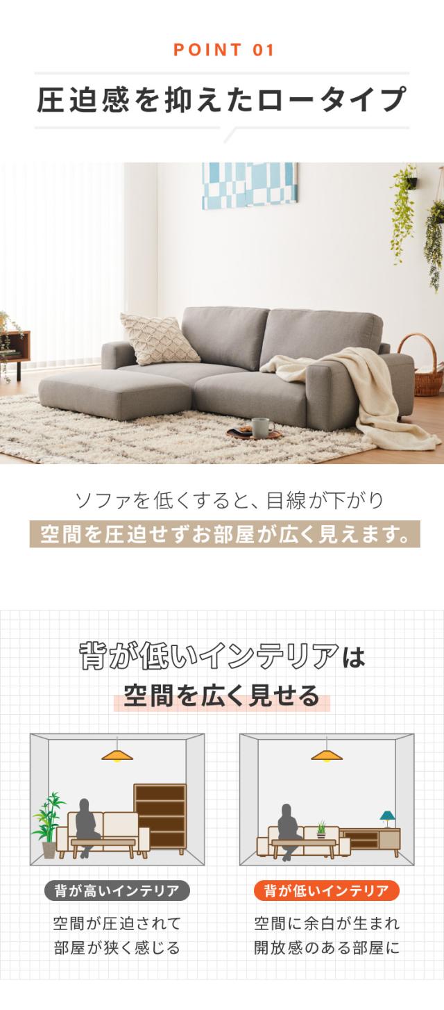 ・ローソファ特有のコンパクトサイズで部屋全体を大きく!