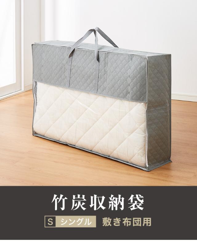 収納ケース 敷布団シングルケース 竹炭収納袋 炭入り 消臭 炭入り消臭 調湿 コンパクト 省スペース 布団収納ケース 布団 ふとん 掛けふとん 袋 隙間収納 収納 クローゼット収納 押入れ収納 ふとん収納袋 布団袋 【送料無料】
