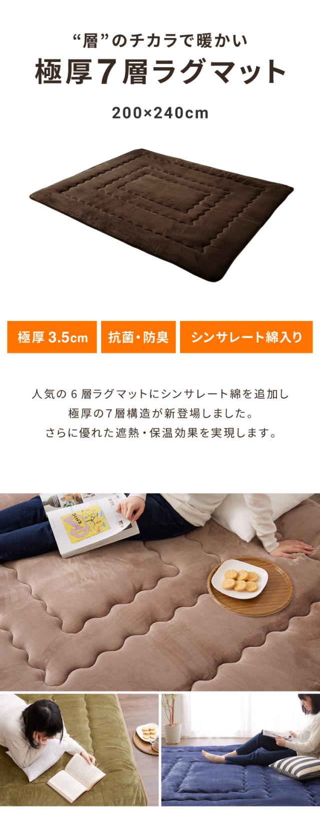 シンサレート使用 あったか極厚7層ラグマット 200×240 約3.5cm厚 厚手 極厚 ふかふか リビング ラグ ラグマット ホットカーペット対応 絨毯 カーペット あったか シンサレート こたつ 敷布団【送料無料】