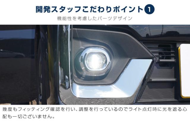 専用設計なのでフォグランプの点灯など機能性に干渉することもなく安心。