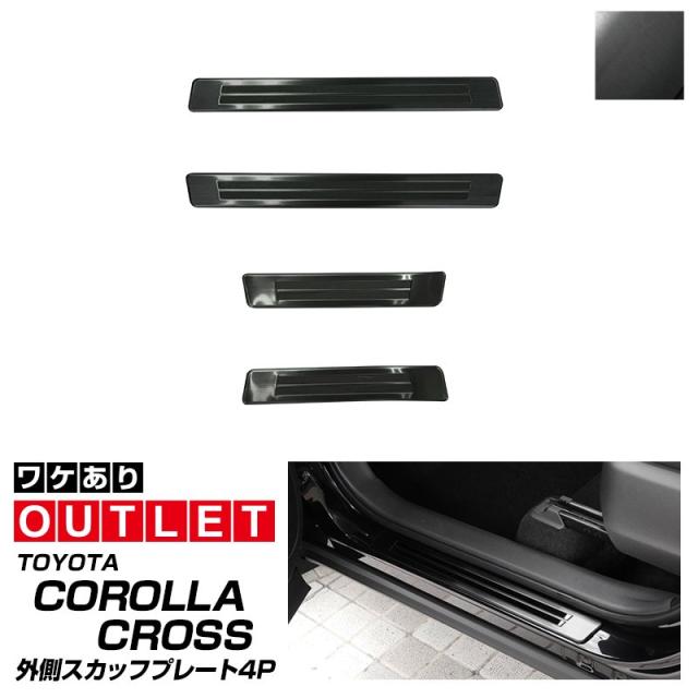 【アウトレット品】カローラクロス スカッフプレート サイドステップ外側 車体保護ゴム付き フロント・リアセット 4P ブラック 2025年5月マイナーチェンジ後対応